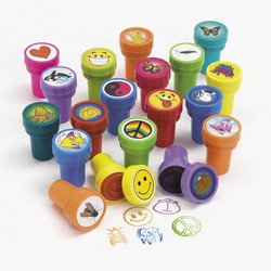 Mega Plastic Stamper Assortment. (100 pcs./unit, DB) 1 1/2" Assortment may vary.