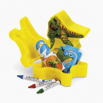 Plastic Dinosaur Filled Stationery Sets. Each 3 1/2" box includes a 10-page 2" notepad, 1 dozen 1" stickers and three 2" crayons. Non-toxic. (1 dozen) Conforms to ASTM D-4236